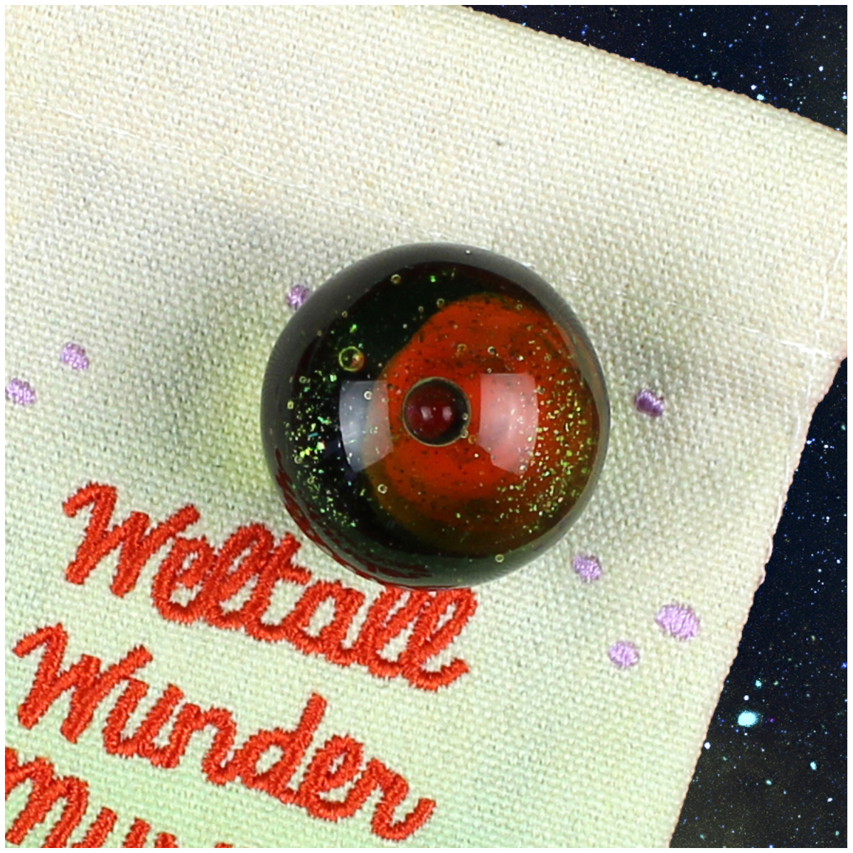 Ava & Yves Weltall-Wundermurmel dunkelrot mit Sternenglitzer und Planet
