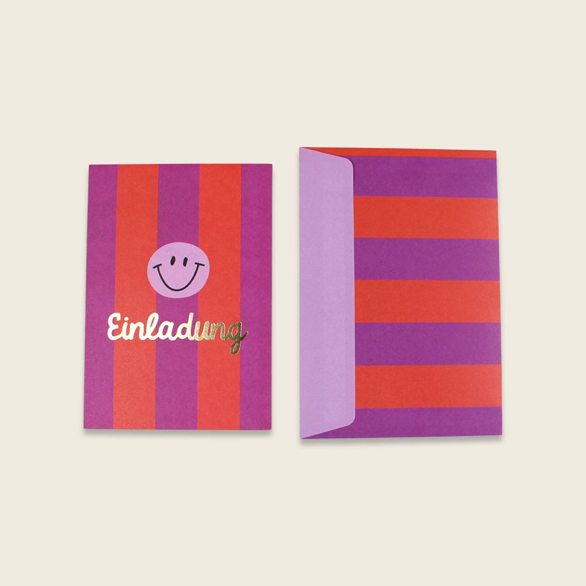 Ava & Yves Einladungskarten-Set Smile violett/koralle/flieder