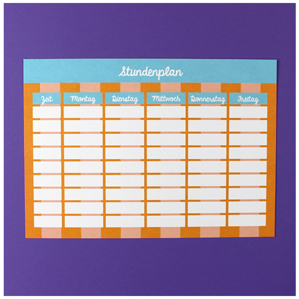 Ava & Yves Stundenplan orange / rosa / hellblau DIN A4. Egal ob Junge, Mädchen, 1. Klasse, 2. Klasse, 3. Klasse oder sogar für die großen Schulkinder. An den bunten Stundenplänen hat jeder Spaß. Sie sind ein schönes kleines Geschenk und passen perfekt zur neuen bunten Kollektion von Ava % Yves.