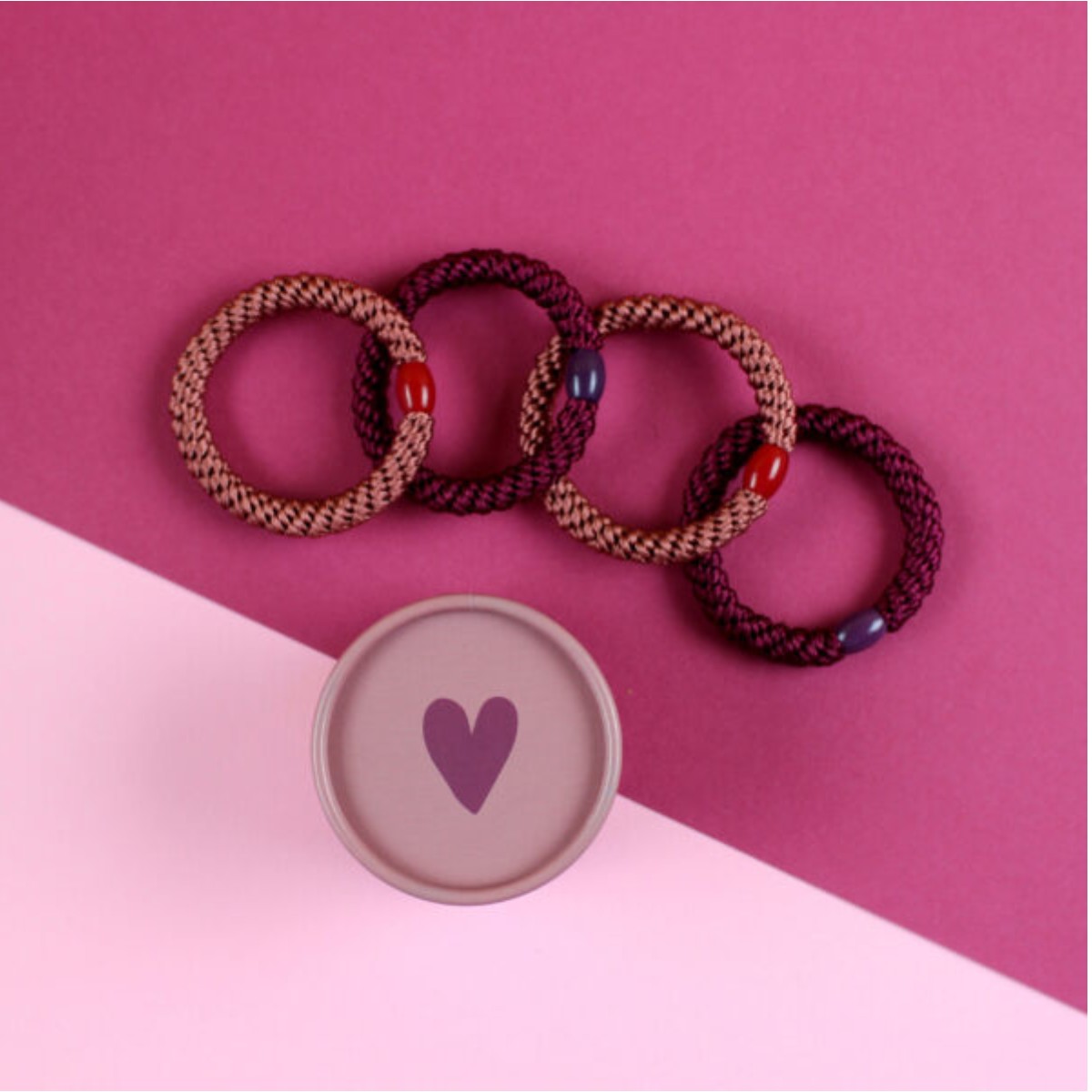Geschenkset mit 4 Haargummis in runder Geschenkbox.