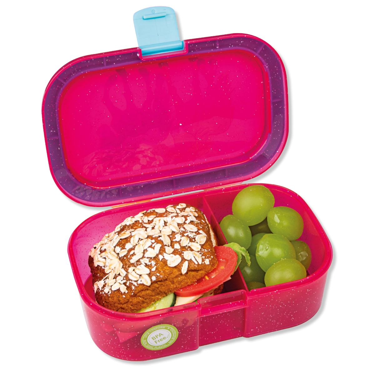 Handliche und robuste Brotdose mit separatem Obst- & Gemüsefach, stabiler Korpus mit kindgerechtem Verschluss