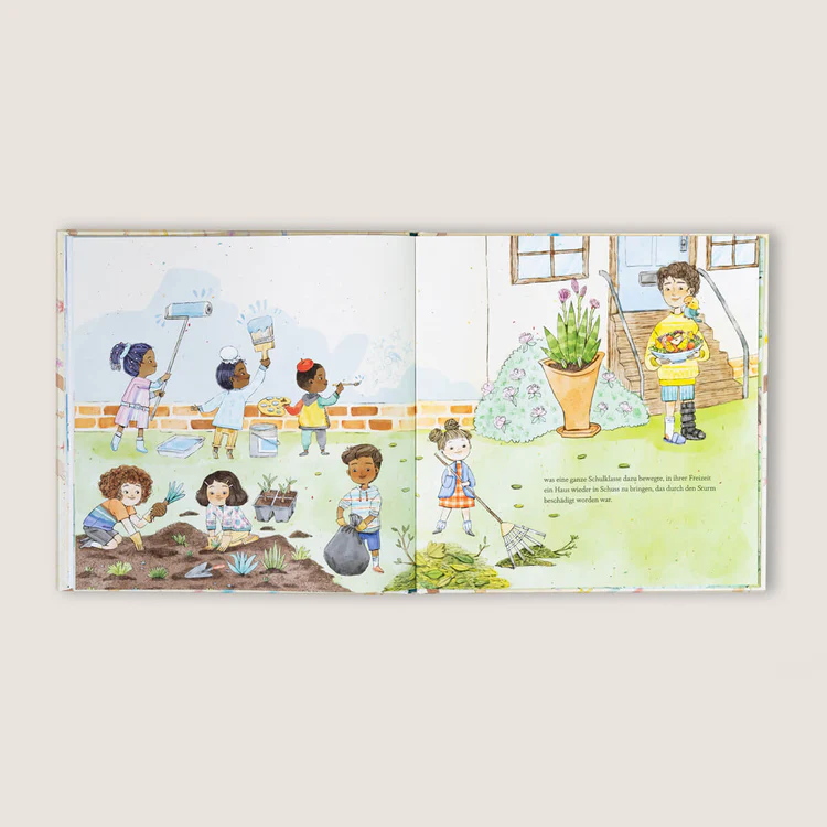 Das Buch hat uns unglaublich beeindruckt, weil es Idealismus auf eine ganz einfache und selbsterklärende Art vermittelt: Lasst uns Gutes tun, einfach, um etwas Gutes tun! In einer Zeit, in der viele Menschen den Problemen auf der Welt mit Zynismus begegnen, zeigt “Eine gute Tat” Kindern ganz simpel und selbstbewusst, dass wir alle etwas tun können, um die Welt besser zu machen.