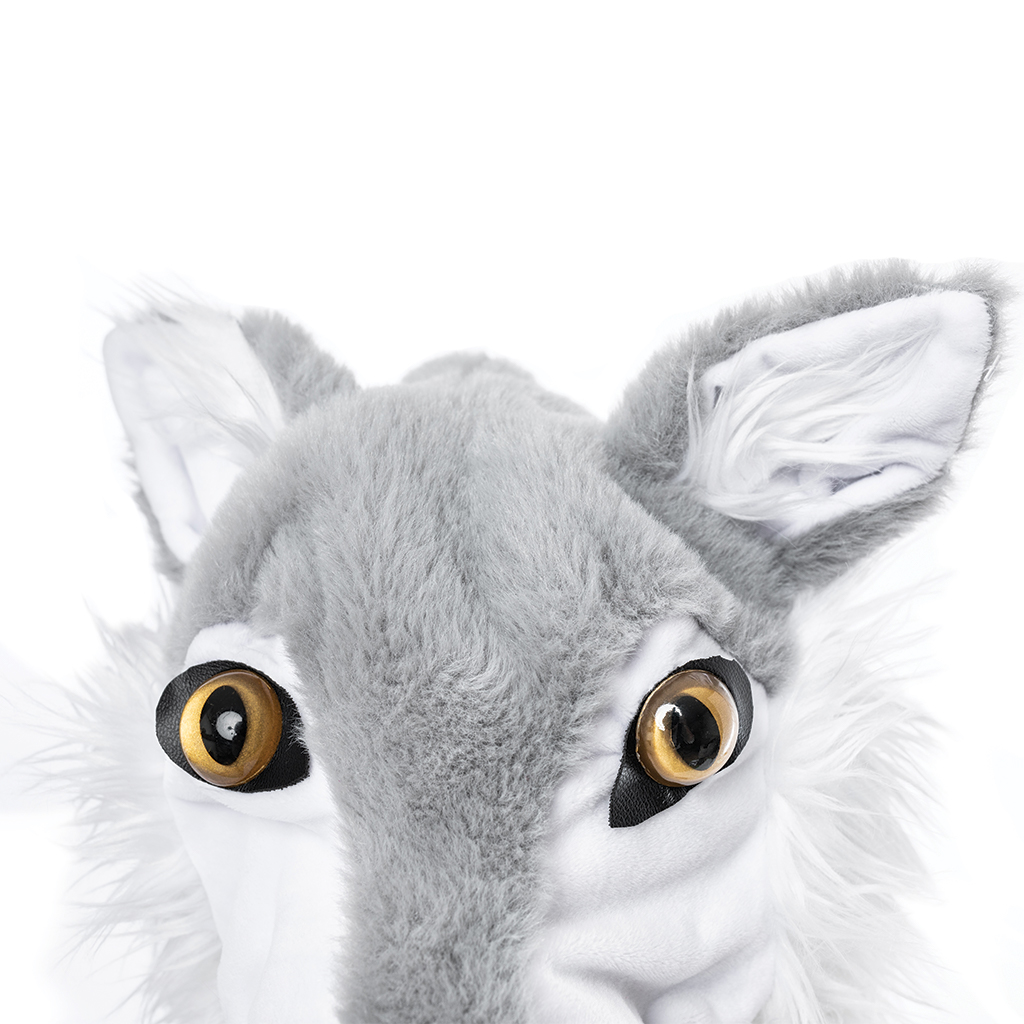 Dieses coole Great Pretenders Kostüm, bestehend aus einem Umhang in grau aus Kunstpelz, mit einem Wolfskopf als Kapuze. Hinten am Cape befindet sich ein langer Schwanz.