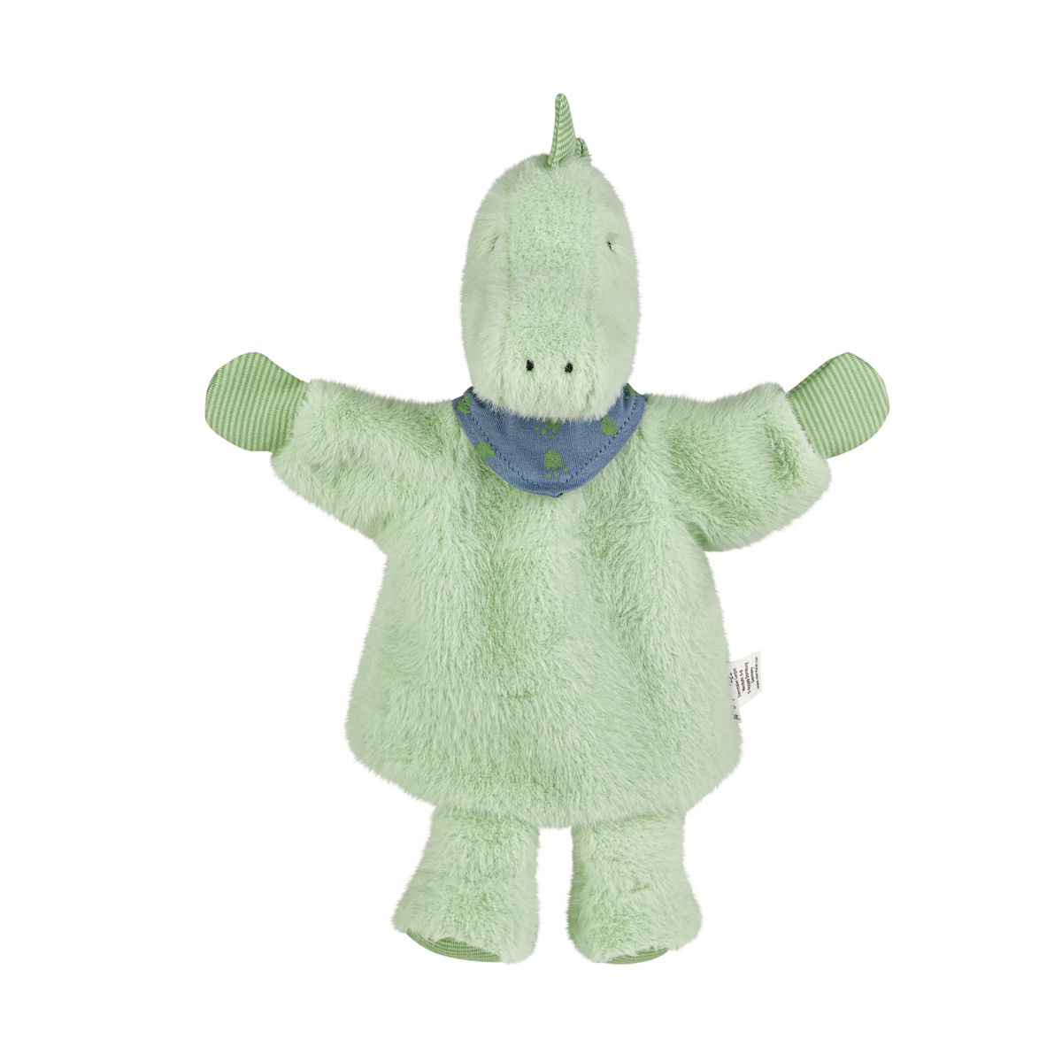 Die Handpuppe ist ohne Rassel oder Glocke ausgestattet, so findet sie auch als Kuscheltier im Bett ihren Platz, sowohl zu Hause als auch in der Kita und bei Bedarf kann man die Handpuppe auch bei 40°C waschen.