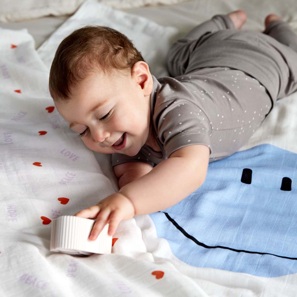 Es kann als leichte Decke, als Stilltuch oder auch zum Pucken des Babys verwendet werden.