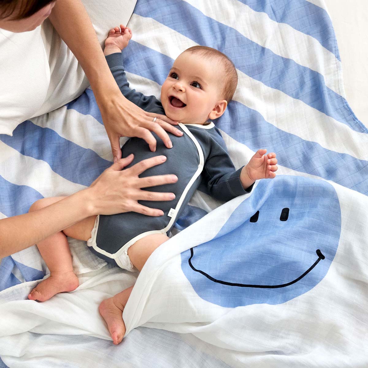 Das multifunktionale Einschlag- und Mulltuch von der LÄSSIG Happy Rascals Kollektion ist zu 70 % aus einer atmungsaktiven, pflegeleichten Viskose (aus Bambusfaser) sowie zu 30 % aus Baumwolle gefertigt.