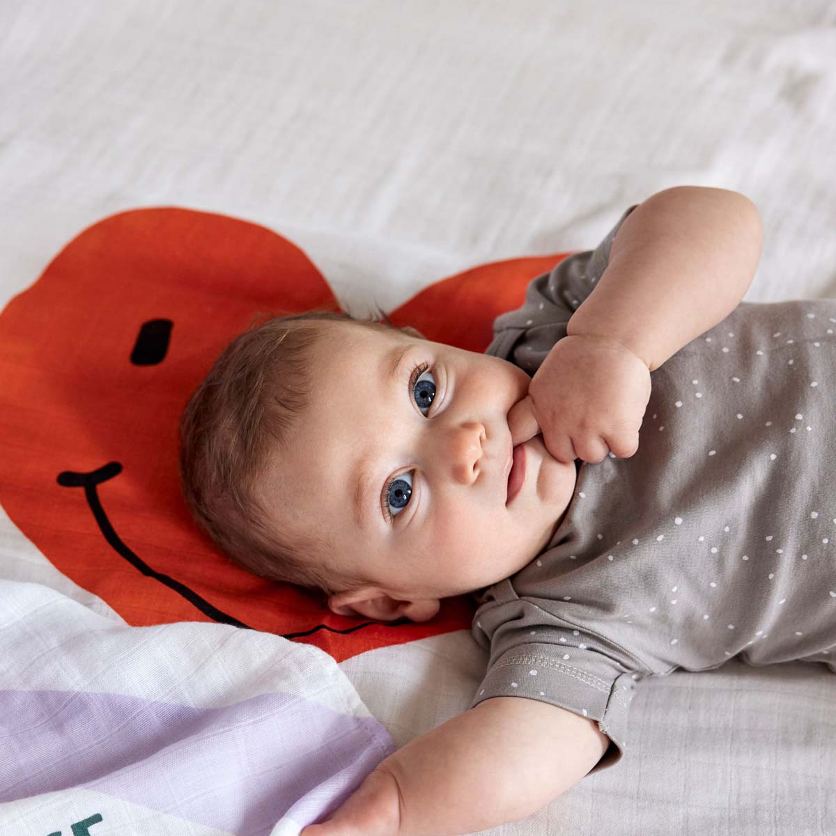 Es kann als leichte Decke, als Stilltuch oder auch zum Pucken des Babys verwendet werden.