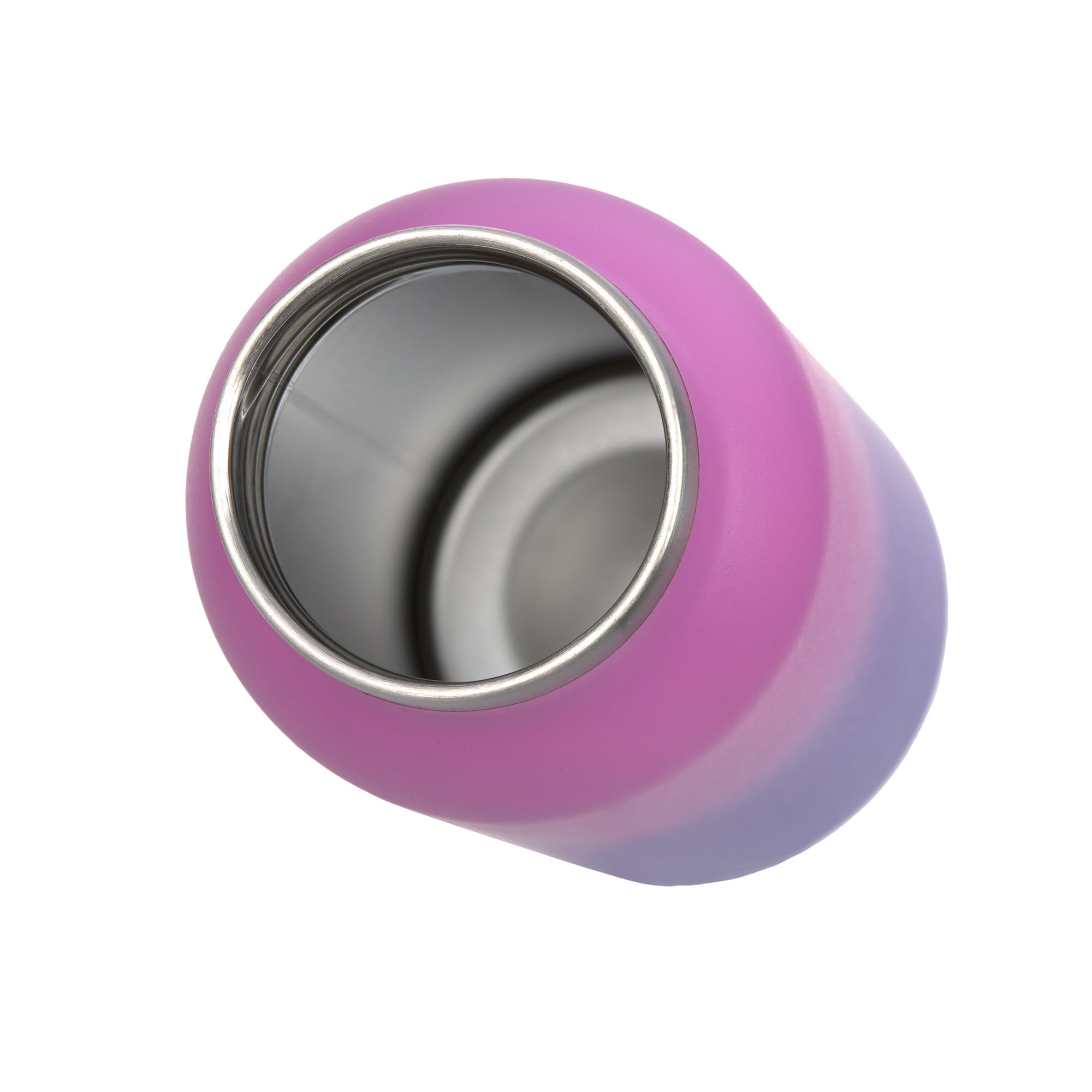 Die BPA-freie Edelstahl Trinkflasche (460 ml) aus der Unique Kollektion mit Farbverlauf Gradient Lila ist bruchfest und auslaufsicher. Die doppelwandige Kinder Flasche eignet sich für stille, sprudelige, lauwarme sowie kühle Getränke. Ohne Strohhalm.