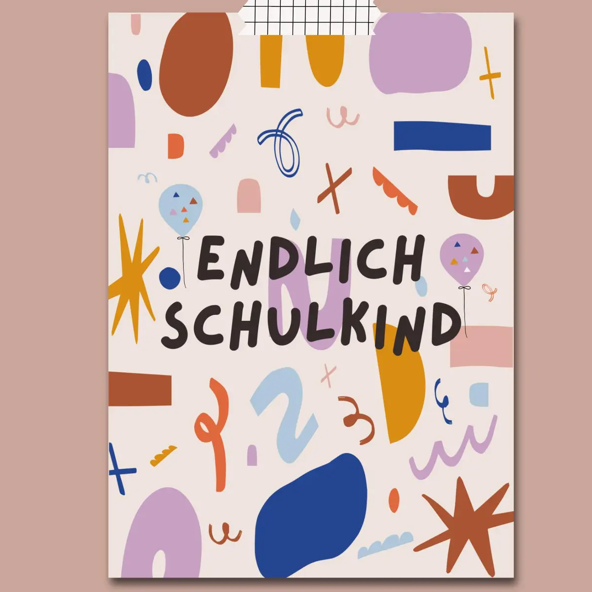 Diese farbenfrohe Karte im DIN A6-Format passt perfekt zur Kunterbunt-Serie und bringt mit ihren verspielten, bunten Formen direkt gute Laune. Ideal für alle, die es modern, lebendig und ein bisschen bunter mögen – ob als Glückwunschkarte zum Schulstart oder als Einladung zur Einschulungsfeier.