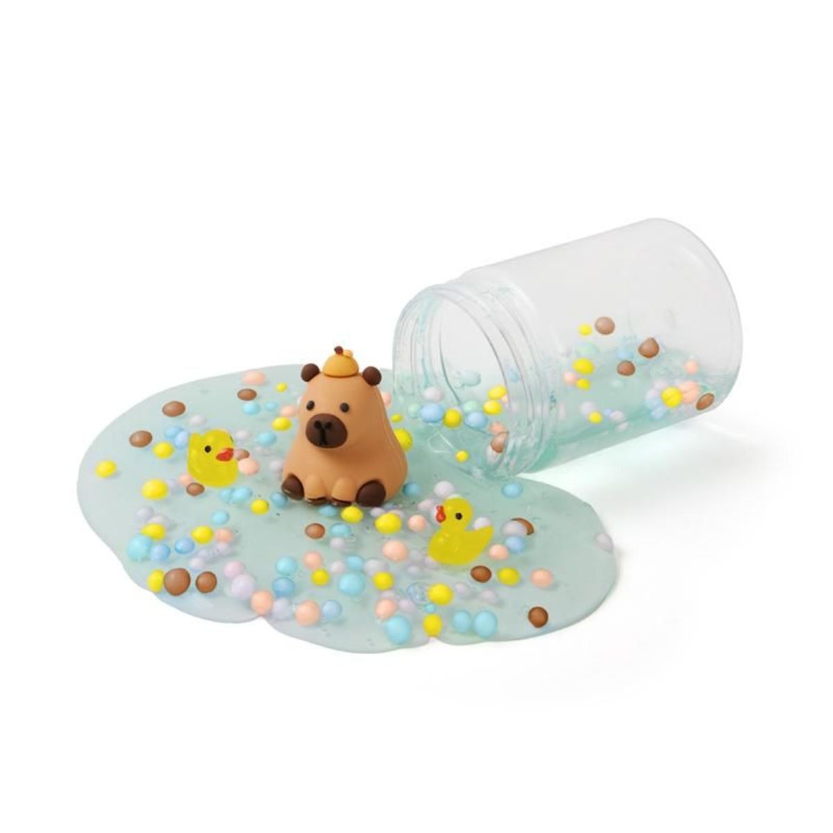 Tauche ein in die Welt des Capy Slime – ein glitschiger, dehnbarer Glibber-Slime mit süßen Überraschungen! Niedliche Mini-Enten und schaumige Deko-Perlen verleihen dem Slime das besondere Extra, während eine bezaubernde Capybara-Figur das Highlight des Sets ist. Perfekt für kreativen Spielspaß, Stressabbau oder als süßes Geschenk!