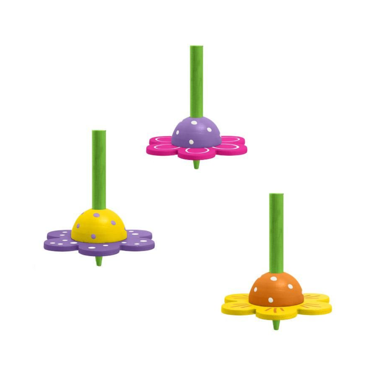 TRENDHAUS® – Holzkreisel Blume. Diese faszinierenden, bunten Kreisel aus Holz ergeben interessante Farbmischungen, wenn sie ihre Runden drehen. Ein beliebtes Mitbringsel, welches die Hand-Auge-Koordination sowie die Feinmotorik spielerisch trainiert.