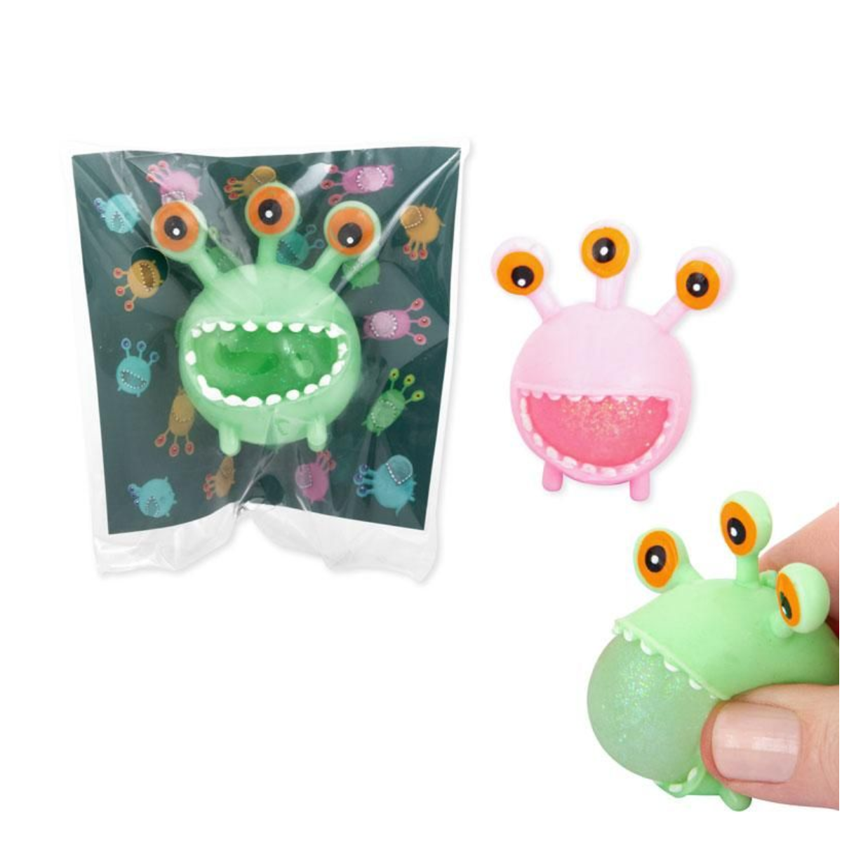 Dieses kleine Monster bietet dir ein lustiges Squeeze-Erlebnis. Drücke das 3-äugige Monster und lasse das irisiernde Glitzerkonfetti wirbeln. Ideal zum Spielen und Relaxen.