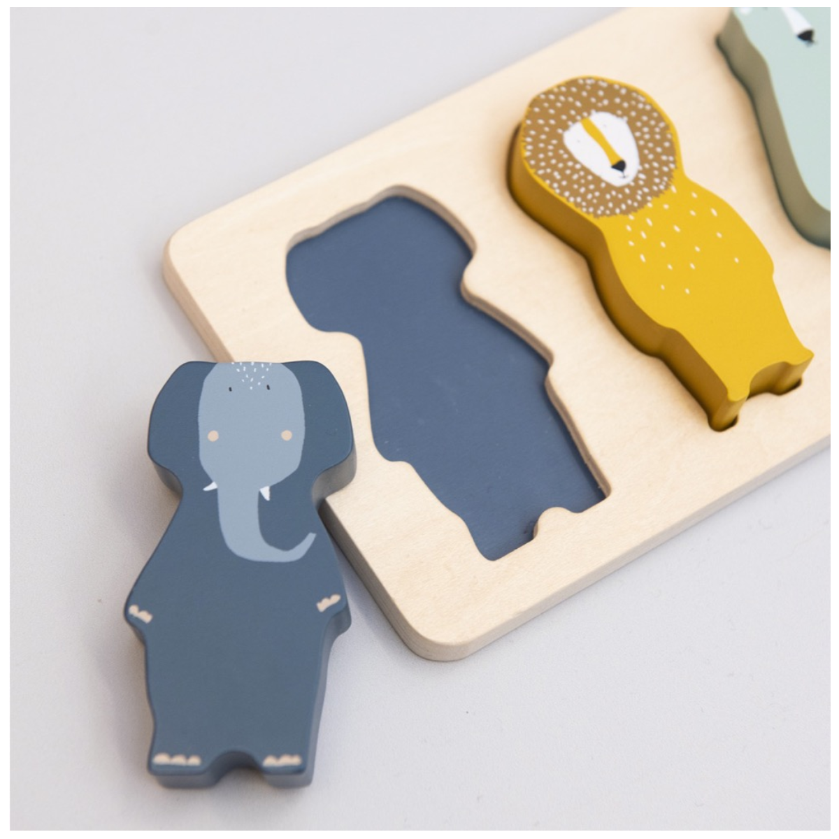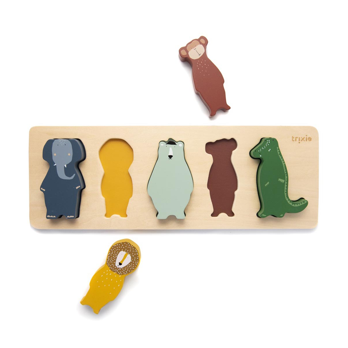 Tiere spielerisch kennenlernen, indem sie in die richtigen Felder gesteckt werden. Die Puzzleteile haben die ideale Form und Größe für kleine Kinderhände. Sie können liegen und stehen, so dass endlose Bau- und Spielkombinationen möglich sind und stundenlanger Spielspaß garantiert ist. Dieses Puzzle fördert die feinmotorischen Fähigkeiten und lehrt die Kleinen, Farben und Tiere zu erkennen. Wird ein Tier aus dem Brett entfernt, erscheint eine Farbe. Das Spielen mit den einzelnen Tieren lässt der Phantasie der Kinder freien Lauf. Das Puzzle und die Tiere sind aus 100 % FSC®-zertifiziertem Holz hergestellt. Sämtliche Farben sind auf Wasserbasis, ungiftig und sicher für Kinder.